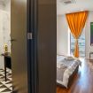 Moderna camera climatizzata dotata di balcone con vista fronte mare, letto matrimoniale, TV a schermo piatto, connessione Wi-Fi gratuita e bagno privato con asciugacapelli e set di cortesia.