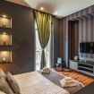 Moderna camera climatizzata dotata di balcone con vista mare laterale, letto matrimoniale, divano, TV a schermo piatto, connessione Wi-Fi gratuita e bagno privato con asciugacapelli e set di cortesia.